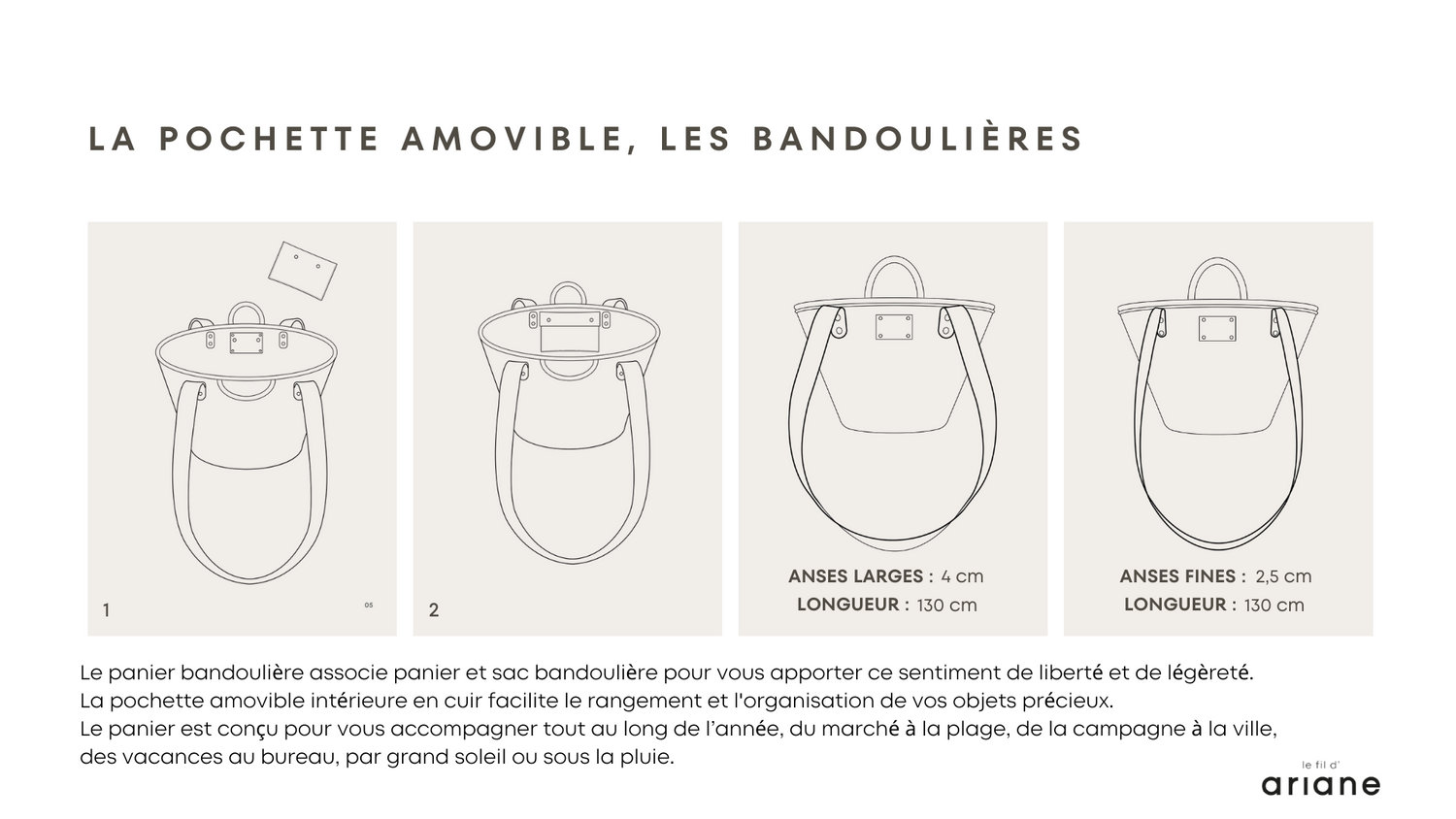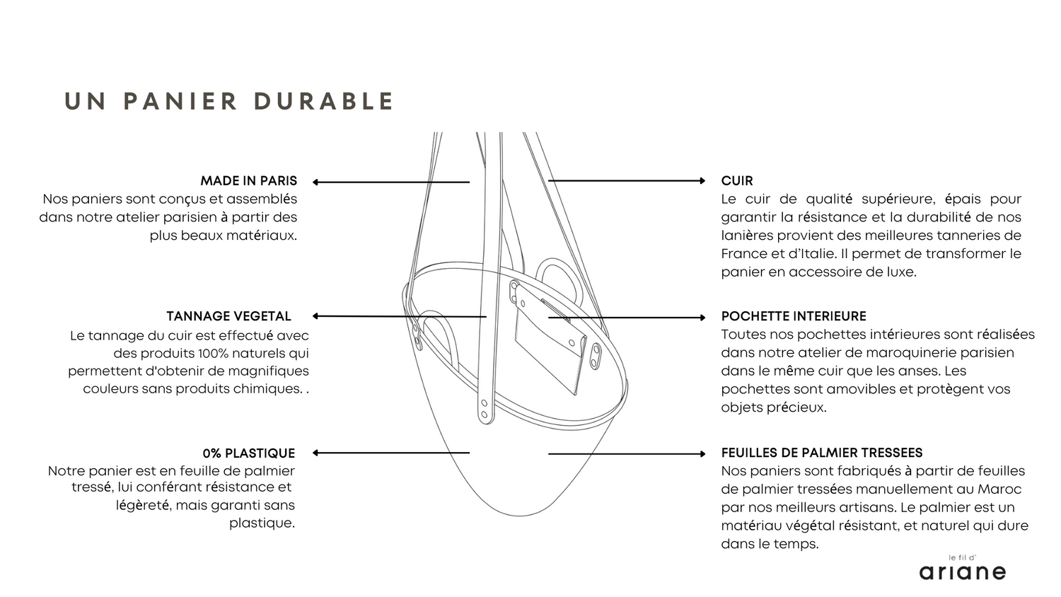 Découvrez notre collection de paniers bandoulières en feuilles de palmiers et cuir à porter toute l’année et en toutes occasions dans une démarche éco-responsable
