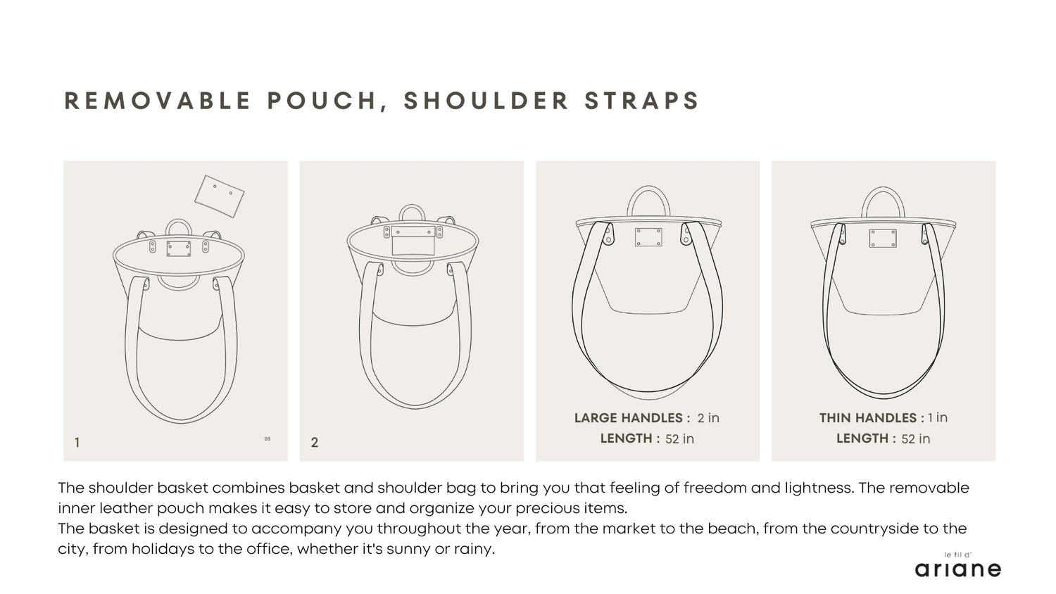 Discover our collection of shoulder baskets in palm leaves and leather to wear all year round and on all occasions in an eco-responsible approach